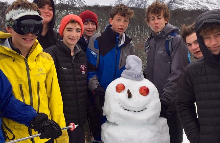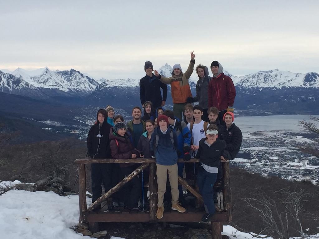 Today for a change of pace we went for a hike on Monte Susana. The trails were snowy, so we used poles for stability and slid through some slippery spots to climb to beautiful viewpoints of Ushuaia and the Beagle Channel. During our picnic lunch our guides, Violeta and Maureen, pulled out maps to help us understand the orientation of the island we are on in relation to Chile and Antarctica. Bobby spearheaded a snowman building effort. We’re back at the hostel now preparing to dogsled to our final dinner together!